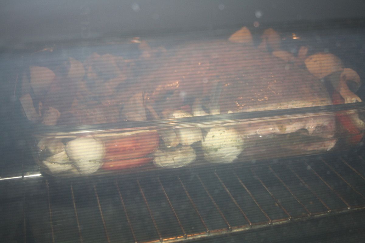 Four positionné sur 180°, c'est parti pour 1h30 de cuisson en arrosant régulièrement.