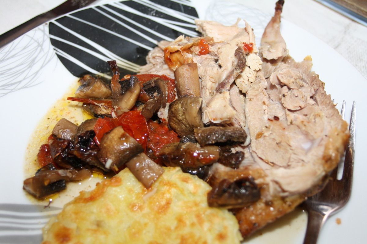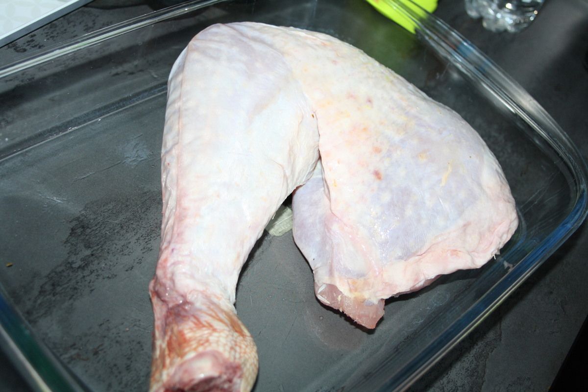 On commence par mettre, dans un plat allant au four, notre cuisse de dinde.